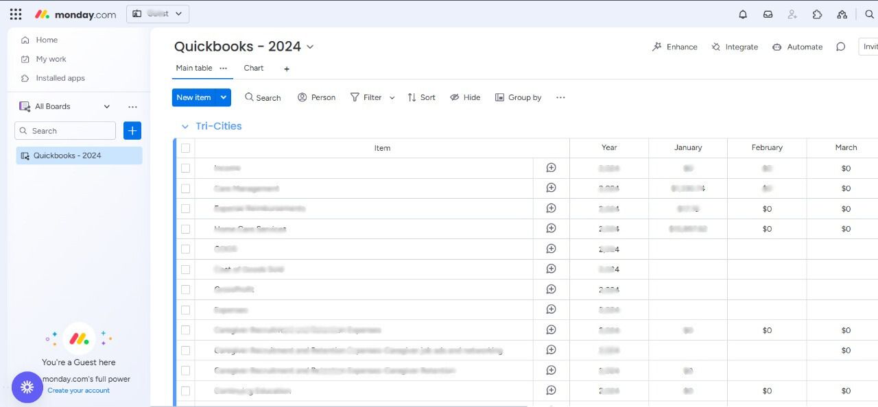 - Clear categorization of income and expense items in Monday.com